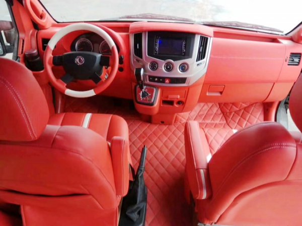 整体造型上,东风御风短轴中顶B型房车采用了典型的欧系短头宽体式设计,体现了当下较流行的欧洲商用车造型设计理念:简洁流畅、时尚大气。车头采用简洁的横式格栅和锐利的鹰眼大灯,配合醒目的东风御风圆形标识,充满了速度感和张力。车身部分与奔驰凌特一样采用了较前端的双曲率低风阻腰线和炫黑内嵌式防擦条组合设计,车身线条流畅舒展,车体轮廓饱满大气。车尾采用高大的双开式后门,凸显其多功能商用平台的欧系定位。在内饰和配置方面,东风御风“轿车化”风格明显,其整体配置水平明显可靠于行业同类型产品。东风御风短轴中顶B型房车如轿车式中控系统设计,精致的一体化内饰,功能强大的GPS/DVD/倒车影像系统,气囊与ABS和EBD的安全组合等。